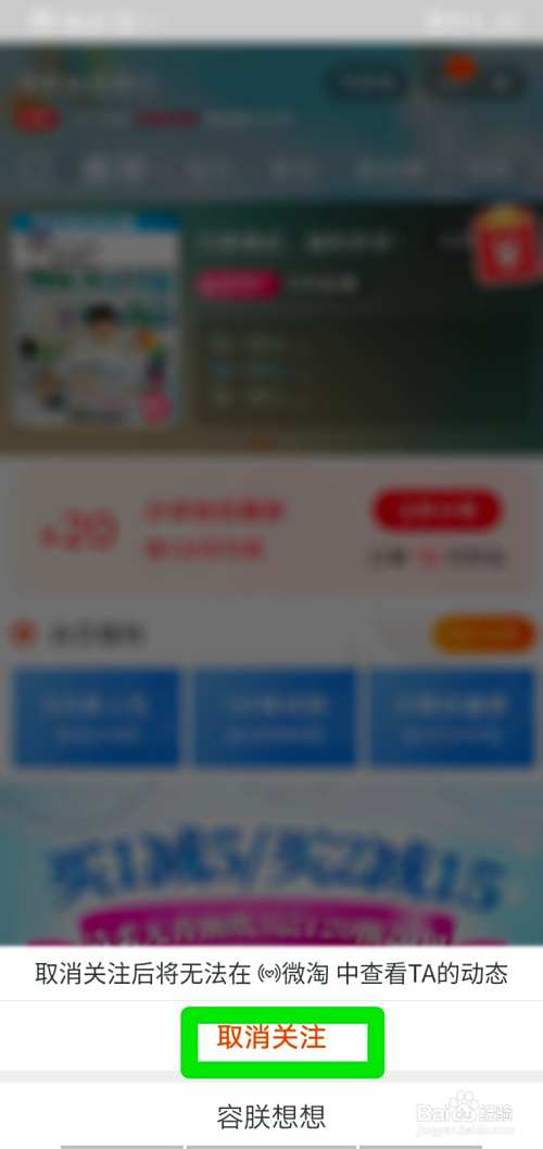 5、界面下方弹出一个确认取消关注提示框,点击“取消关注”选项。