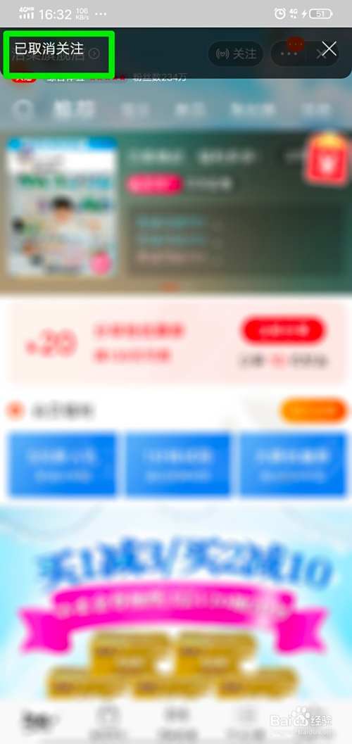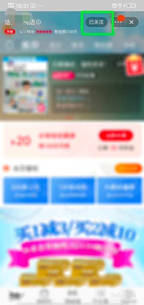 进入店铺首页,我们点击店铺上方“已关注”选项。