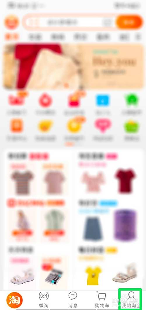 我们进入淘宝首页,点击首页右下角“我的淘宝”选项。