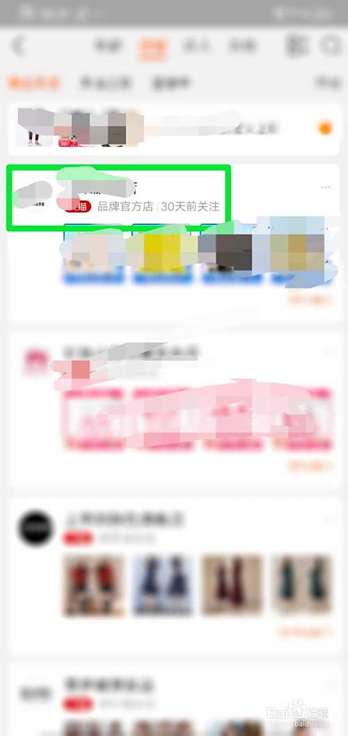 3、进入店铺关注界面,找到要取消关注的店铺,点击进入该店铺。