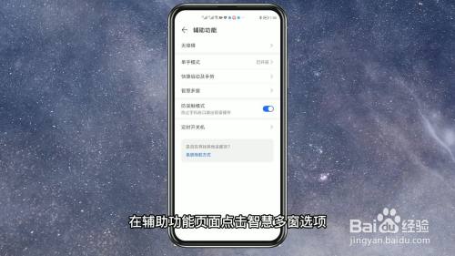 点击桌面设置,在手机设置菜单中点击辅助功能打开智慧多窗选项,再点击手势控制,开启分屏手势,具体操作如下。