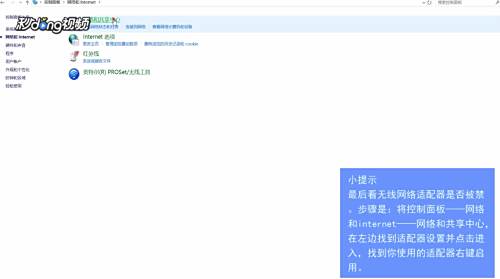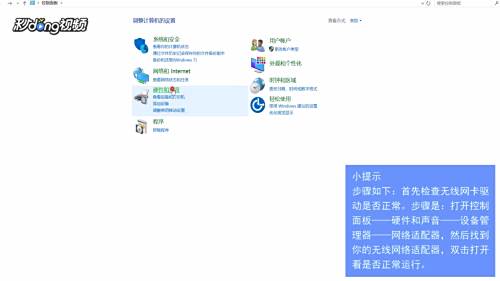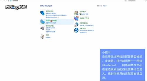 4查看无线网络适配器是否被禁用:打开“控制面板”,点击“网络与Internet”。