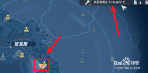 首先班吉斯第一个风景在右侧的传送点,坐标位置是-10.6,422.1。