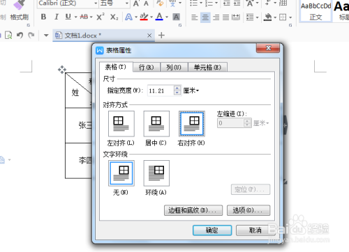 若是我们想让表格居右,就选择右对齐,表格就靠右边显示了。