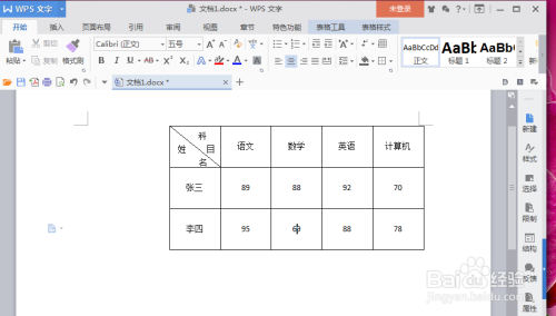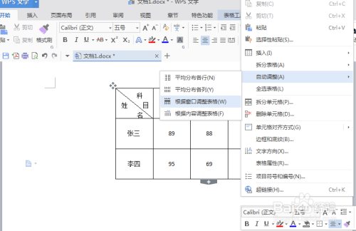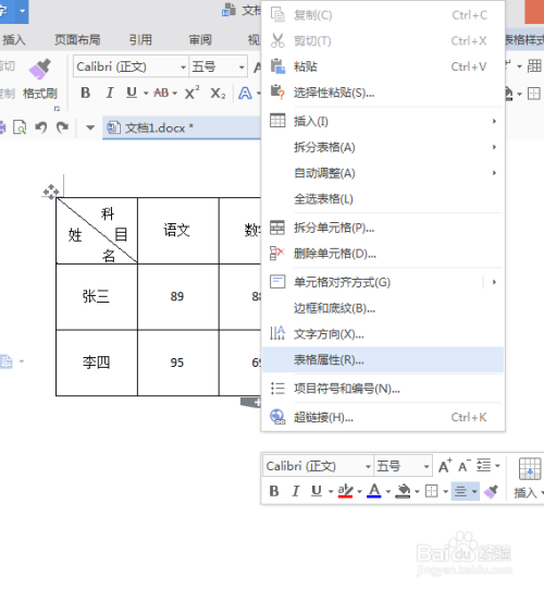 首先打开一个WPS文字(这里以文档1.docx为例),鼠标点击右键——表格属性。
