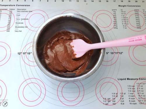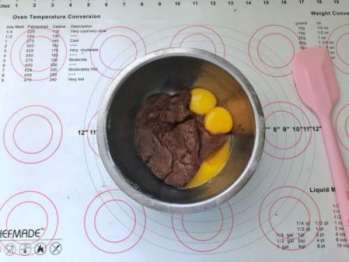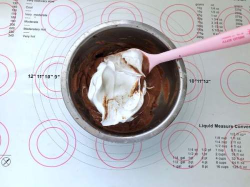99、取一半蛋白霜放入可可糊中。