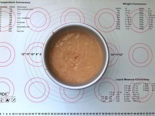 1313、倒入学厨戚风模中,轻轻震出气泡。
