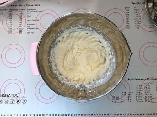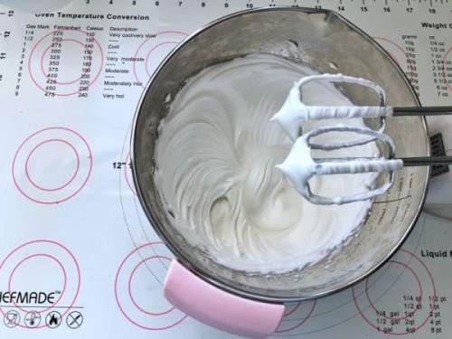 88、蛋白分三次加入白砂糖打至硬性发泡。