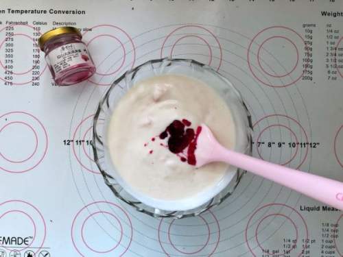 1616、接下来制作果酱慕斯液。酸奶中倒入果酱搅拌均匀。