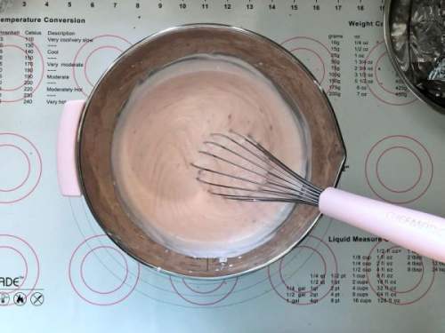 33、倒入冰酸奶可以快速降温,搅拌均匀。