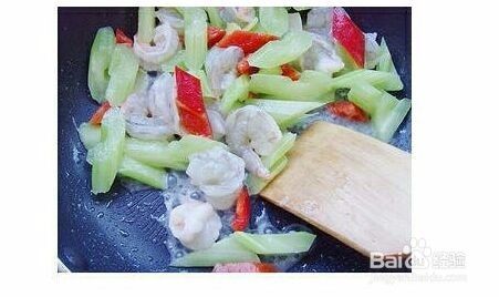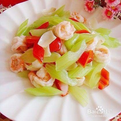 西芹炒虾仁是一道菜,制作材料有西芹、虾仁等