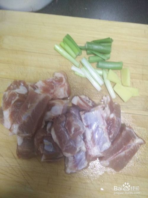 将 500g 肋排洗净切块,葱花切段,姜切段。