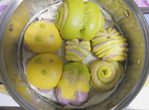 彩色运用到馒头上是非常搭配的,好看又好吃。