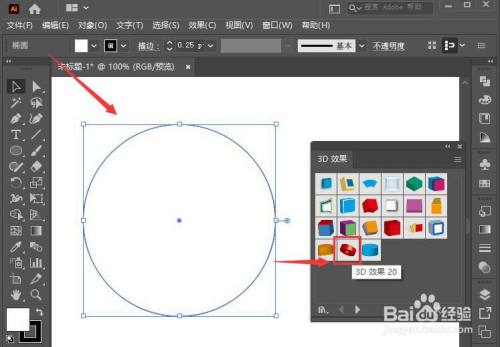 3.鼠标点击选中圆形,在3D效果中勾选3D效果20的方案