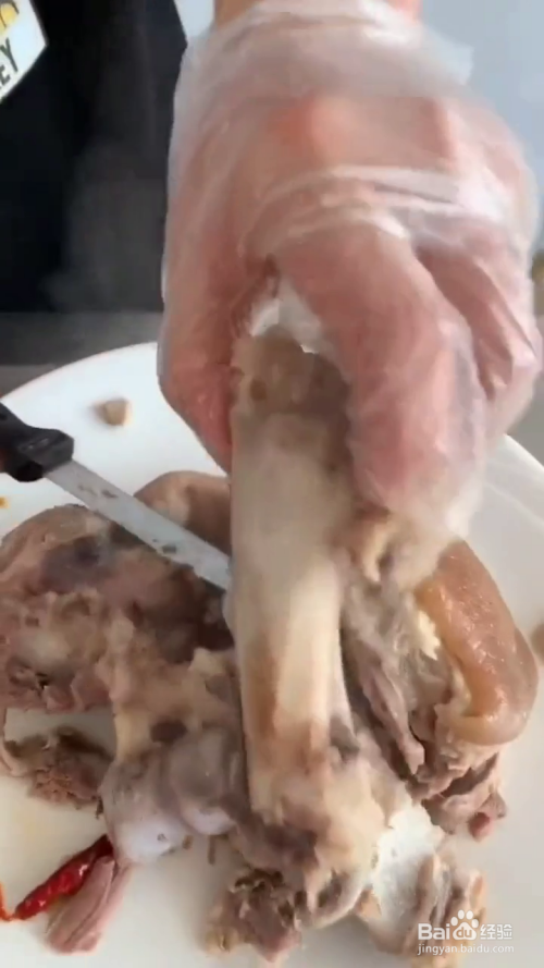 再放入酱油,醋,辣椒油,香油,搅拌均匀,再将肘子切片,即可开吃啦