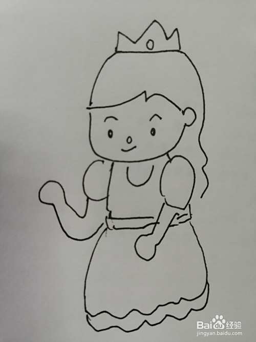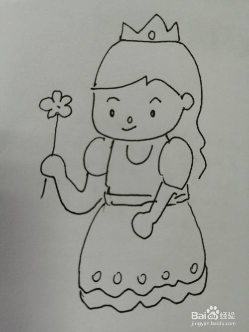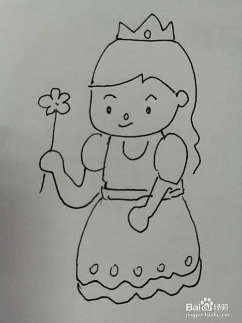 第七步,最后把漂亮的小女孩手上的魔法棒画出来。漂亮的小女孩就画好了。