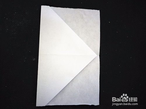 翻面,右下角往上折一分为二,在沿着一侧的中心线往下折,另外一侧同上