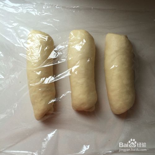 将面团在面板上压揉几次,排出气体。平均分成三份。盖上塑料薄膜,放松15分钟。