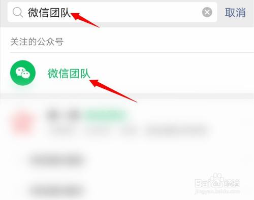 1、打开微信,点击搜索图标,输入微信团队,点击下方服务进入。