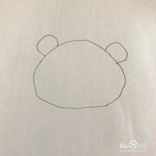 在石头的上方画一个小圆圈,作为熊猫的2个耳朵,见下图