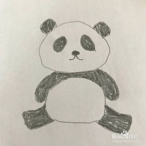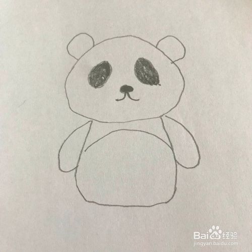 在熊猫的身体下方画出熊猫的两条腿,见下图