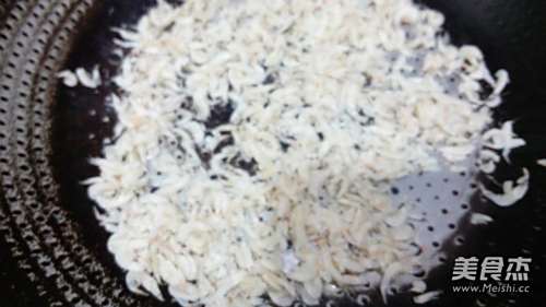 3炒勺烧热放入洗好的虾皮,炒干即可盛出备用。
