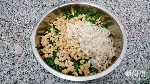 7用开水烫面,面凉后用手揉搓成均匀的面团。