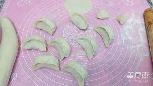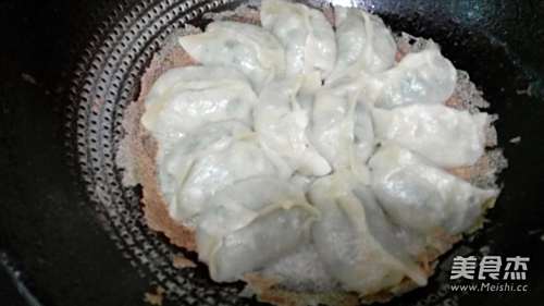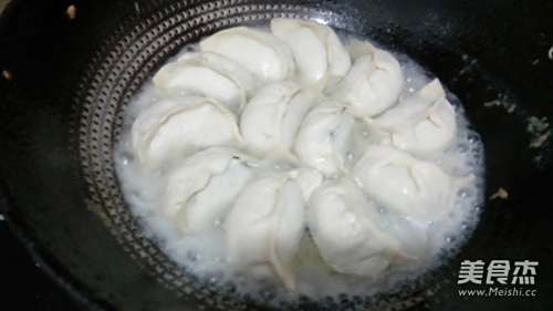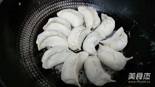 10炒勺烧热放油,逐个放入饺子,小火煎至饺子底部微黄。