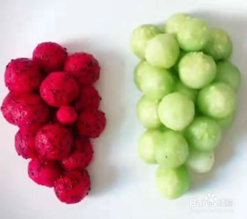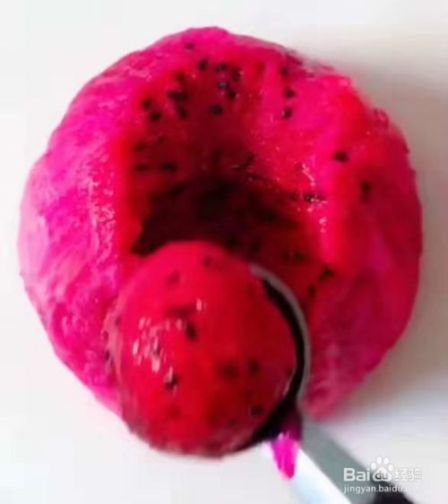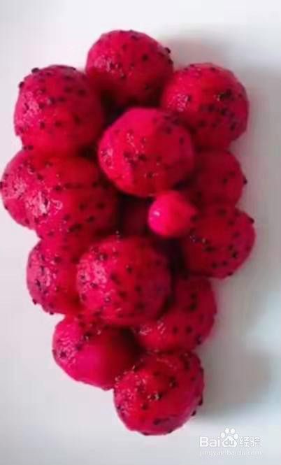 把火龙果去皮,用小勺子挖出小圆形。见下图
