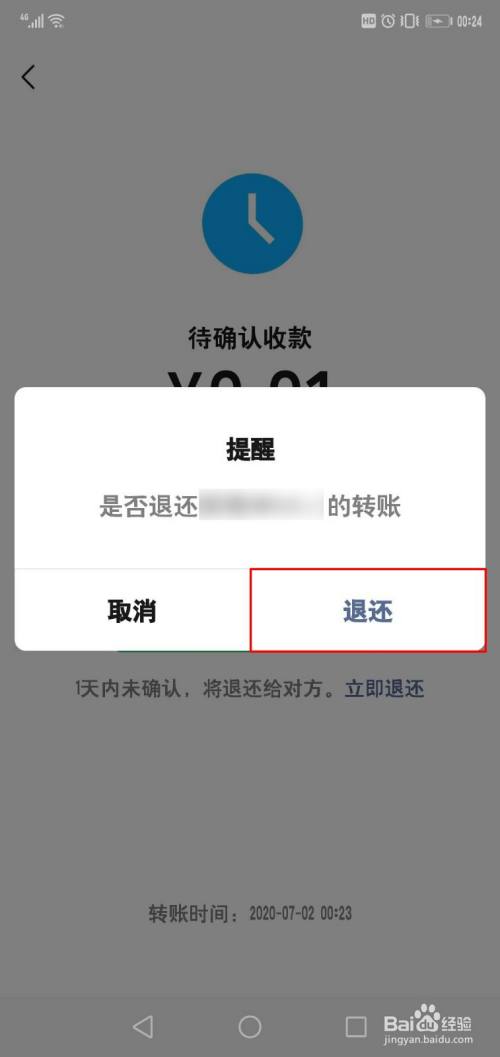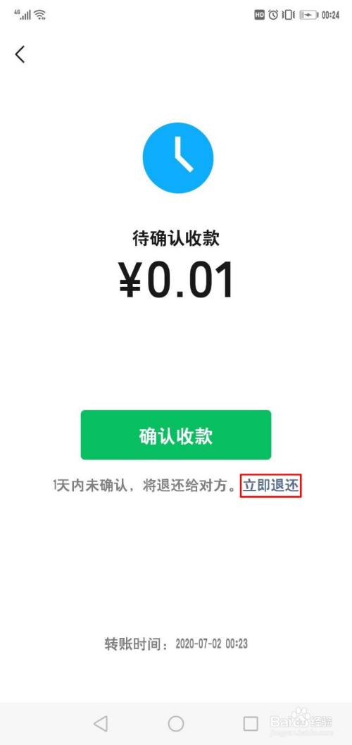 当好友把款项通过转账的方式转给你的时候,如果你不想收的话,第一种方法:可以什么都不做,等待24个小时退回到对方账户。