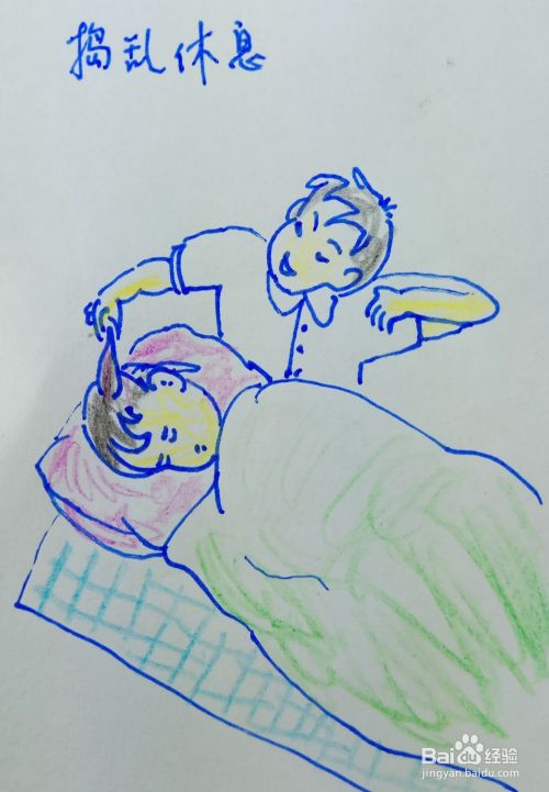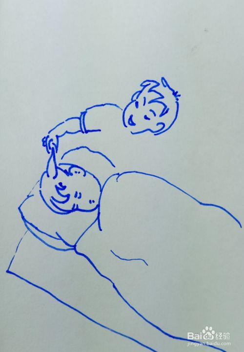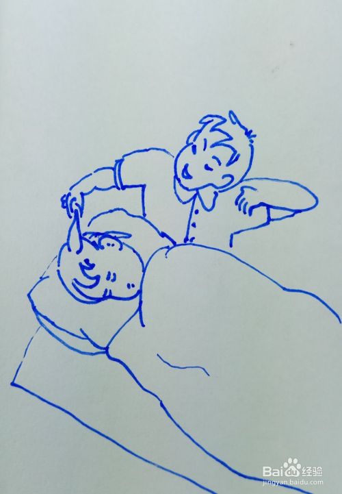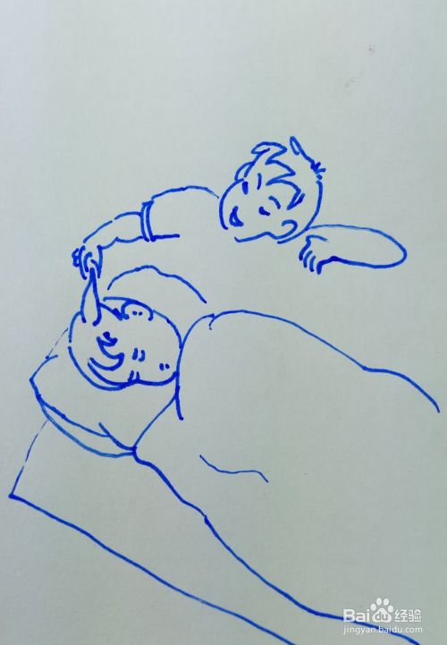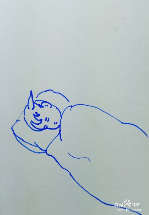 用水彩笔涂出他的皮肤色彩,头发色彩,枕头色彩,再修饰一下背景,简笔画就画好了。