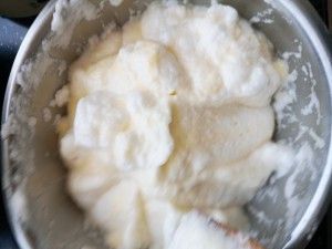 蛋清打发25分钟成糊状。(蛋清大概会膨胀至两倍大)