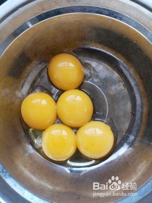 分离蛋黄和蛋清。(磕开蛋壳,小心一些即可)