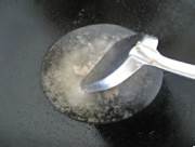 锅内热少许食油,中小火下菜脯粒爆香出味后捞起待用。