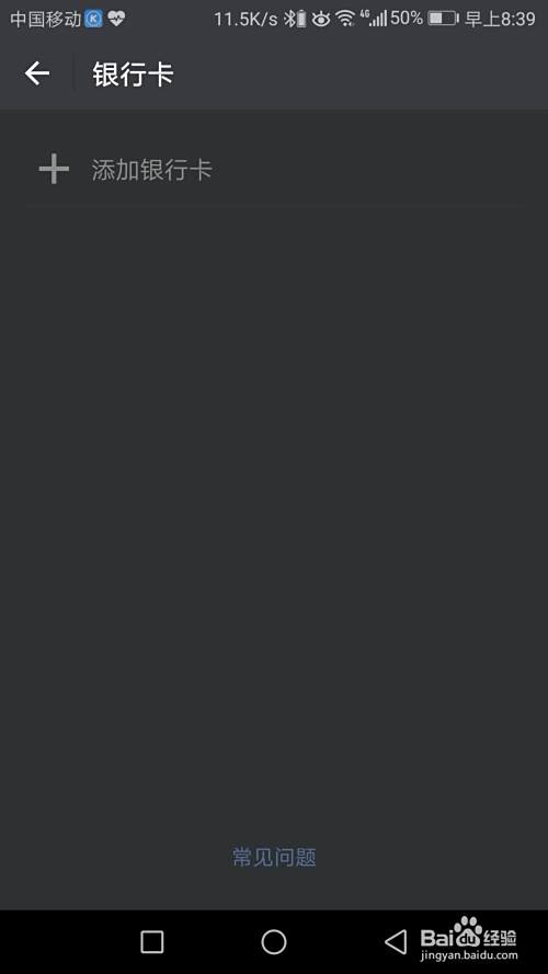 现在在银行卡的底端,点击选择“常见问题”