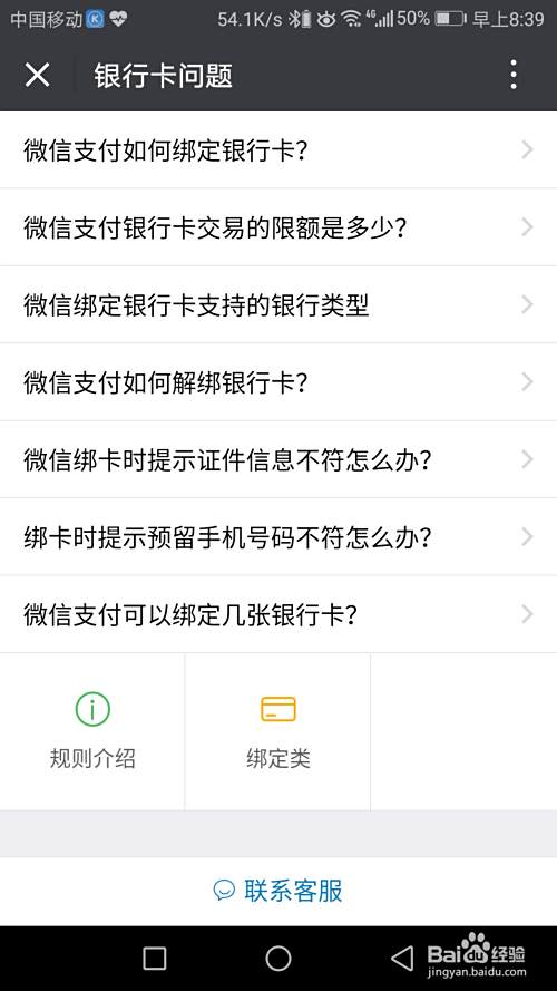 现在就弹出了所有关于微信银行卡的问题,找到“微信支付银行卡交易的限额是多少?”