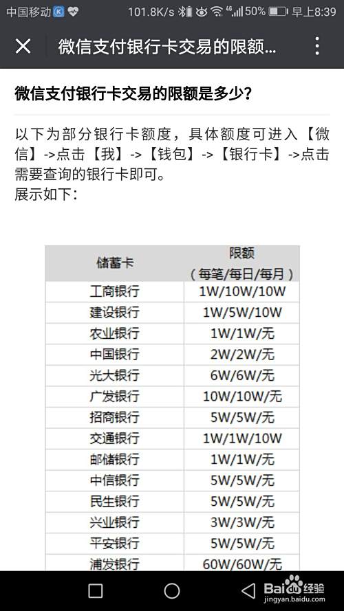 微信支付查看各大银行限额的方法详解