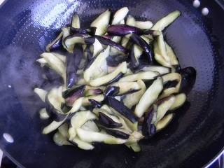 锅内倒入食用油,加热,放入茄子,煎熟。