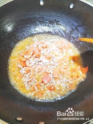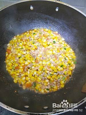 加入其他火腿肠,黄瓜,玉米爆炒。
