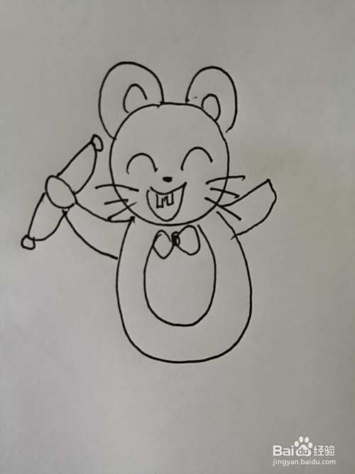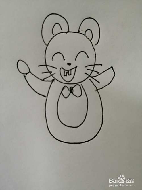 第五步,接着在可爱的小老鼠的身体上画出两只小手,注意小老鼠