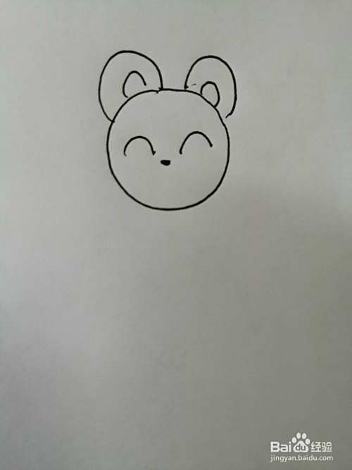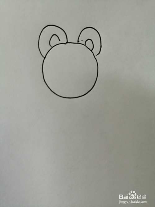 第一步,我们先把可爱的小老鼠椭圆形的头画出来,注意头顶两只小耳朵的画法。