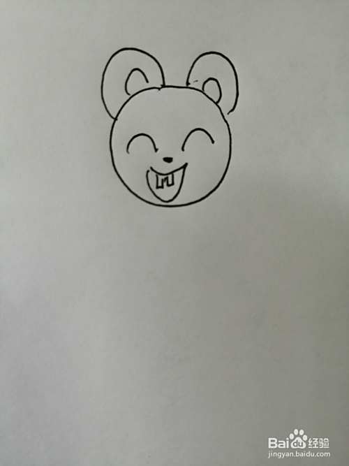 第二步,接着在可爱的小老鼠的头部里面画出两只可爱的眼睛,眼睛画法比较简单。