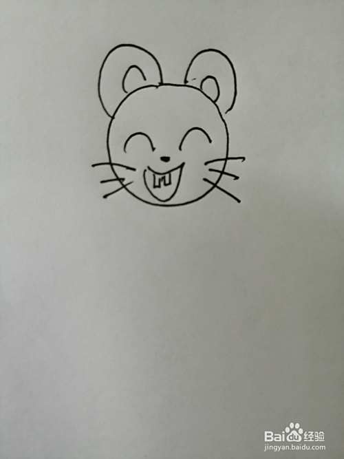 第三步,接着在可爱的小老鼠的眼睛下面画出鼻子和两边的胡须,注意胡须细节的画法。