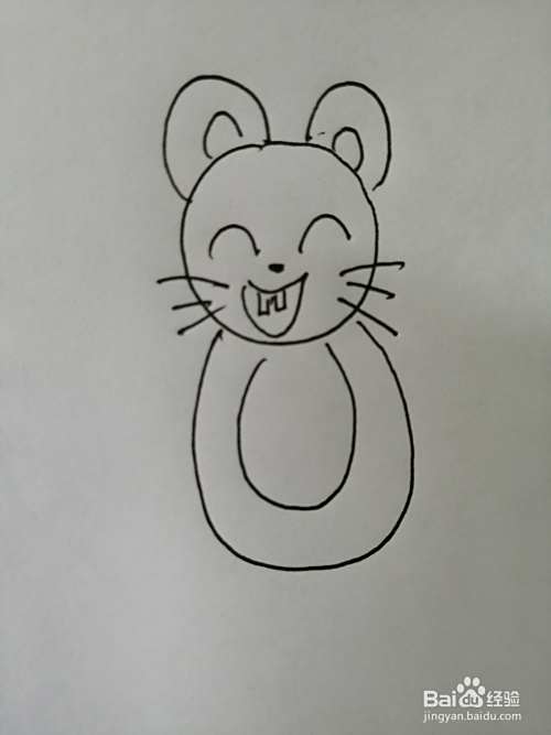 第四步,然后继续画出可爱的小老鼠的身体,注意小老鼠肚子的画法。