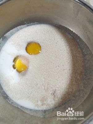 牛奶、鸡蛋、酵母、盐、小苏打混合,搅拌均匀