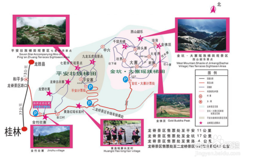 自驾/租车:搜索龙脊梯田风景名胜区,按照导航直达景区。(建议自驾前往,各景点之间相隔很远,方便出行,可以多玩几个景点)