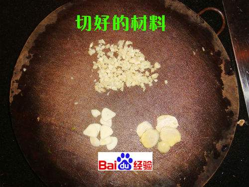 6锅头倒入少许油将胡萝卜片与大蒜片煸炒至胡萝卜变色!
