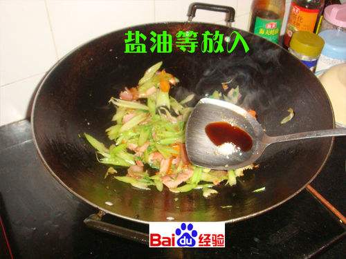 9放入盐、耗油及少许酱油再炒几分钟!看下图