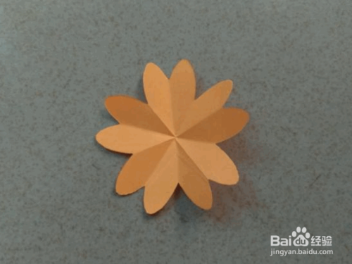 展开得到一朵五瓣花,五个短折痕向内折叠,折叠得到一瓣花。