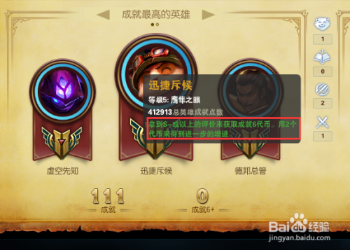 选择想要解锁6级英雄成就的英雄对应的6级成就代币
